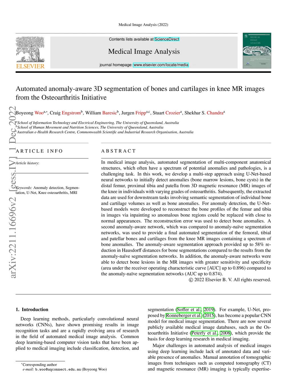 Automated anomaly-aware 3D segmentation of bones and cartilages in knee