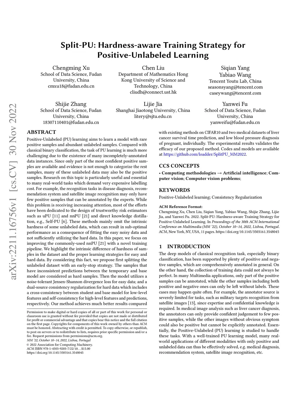 Positive-Unlabeled (PU) learning aims to learn a model with rare positive samples and abundant unlabeled samples. Compared with classical binary classification, the task of PU learning is much more challenging due to the existence of many incompletely-annotated data instances. Since only part of the most confident positive samples are available and evidence is not enough to categorize the rest samples, many of these unlabeled data may also be the positive samples. Research on this topic is particularly useful and essential to many real-world tasks which demand very expensive labelling cost. For example, the recognition tasks in disease diagnosis, recommendation system and satellite image recognition may only have few positive samples that can be annotated by the experts. These methods mainly omit the intrinsic hardness of some unlabeled data, which can result in sub-optimal performance as a consequence of fitting the easy noisy data and not sufficiently utilizing the hard data. In this paper, we focus on improving the commonly-used nnPU with a novel training pipeline. We highlight the intrinsic difference of hardness of samples in the dataset and the proper learning strategies for easy and hard data. By considering this fact, we propose first splitting the unlabeled dataset with an early-stop strategy. The samples that have inconsistent predictions between the temporary and base model are considered as hard samples. Then the model utilizes a noise-tolerant Jensen-Shannon divergence loss for easy data; and a dual-source consistency regularization for hard data which includes a cross-consistency between student and base model for low-level features and self-consistency for high-level features and predictions, respectively.