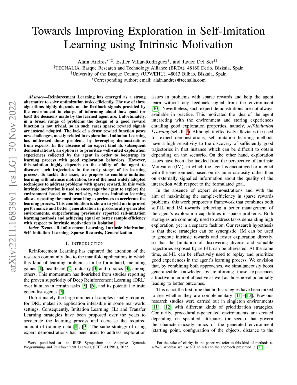 Towards Improving Exploration in Self-Imitation Learning using Intrinsic