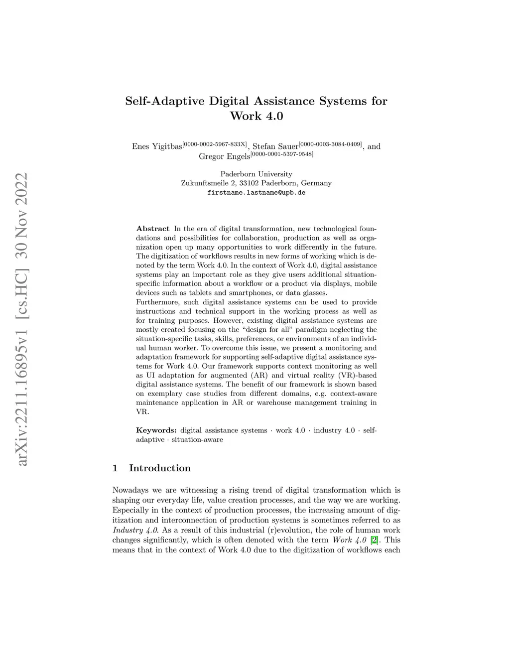 Self-Adaptive Digital Assistance Systems for Work 4.0