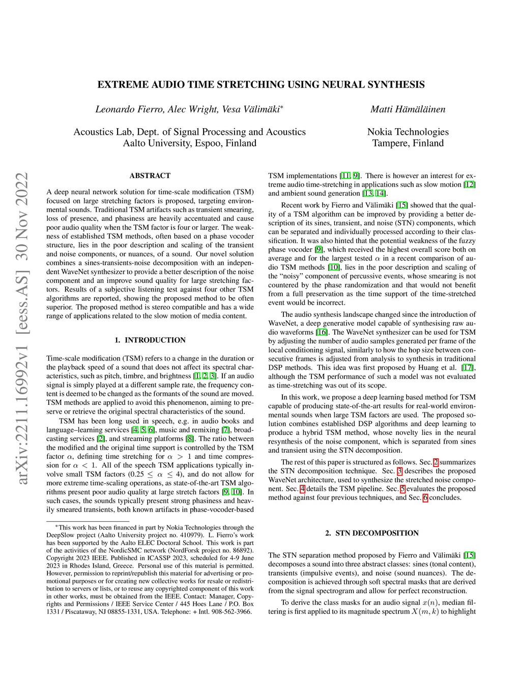 A deep neural network solution for time-scale modification (TSM) focused on large stretching factors is proposed, targeting environmental sounds. Traditional TSM artifacts such as transient smearing, loss of presence, and phasiness are heavily accentuated and cause poor audio quality when the TSM factor is four or larger. The weakness of established TSM methods, often based on a phase vocoder structure, lies in the poor description and scaling of the transient and noise components, or nuances, of a sound. Our novel solution combines a sines-transients-noise decomposition with an independent WaveNet synthesizer to provide a better description of the noise component and an improve sound quality for large stretching factors. Results of a subjective listening test against four other TSM algorithms are reported, showing the proposed method to be often superior. The proposed method is stereo compatible and has a wide range of applications related to the slow motion of media content.