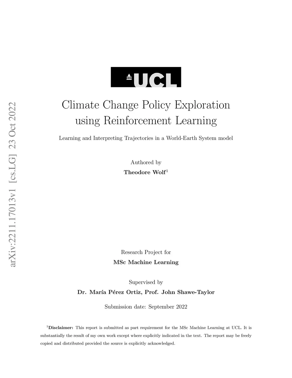 Climate Change Policy Exploration using Reinforcement Learning
