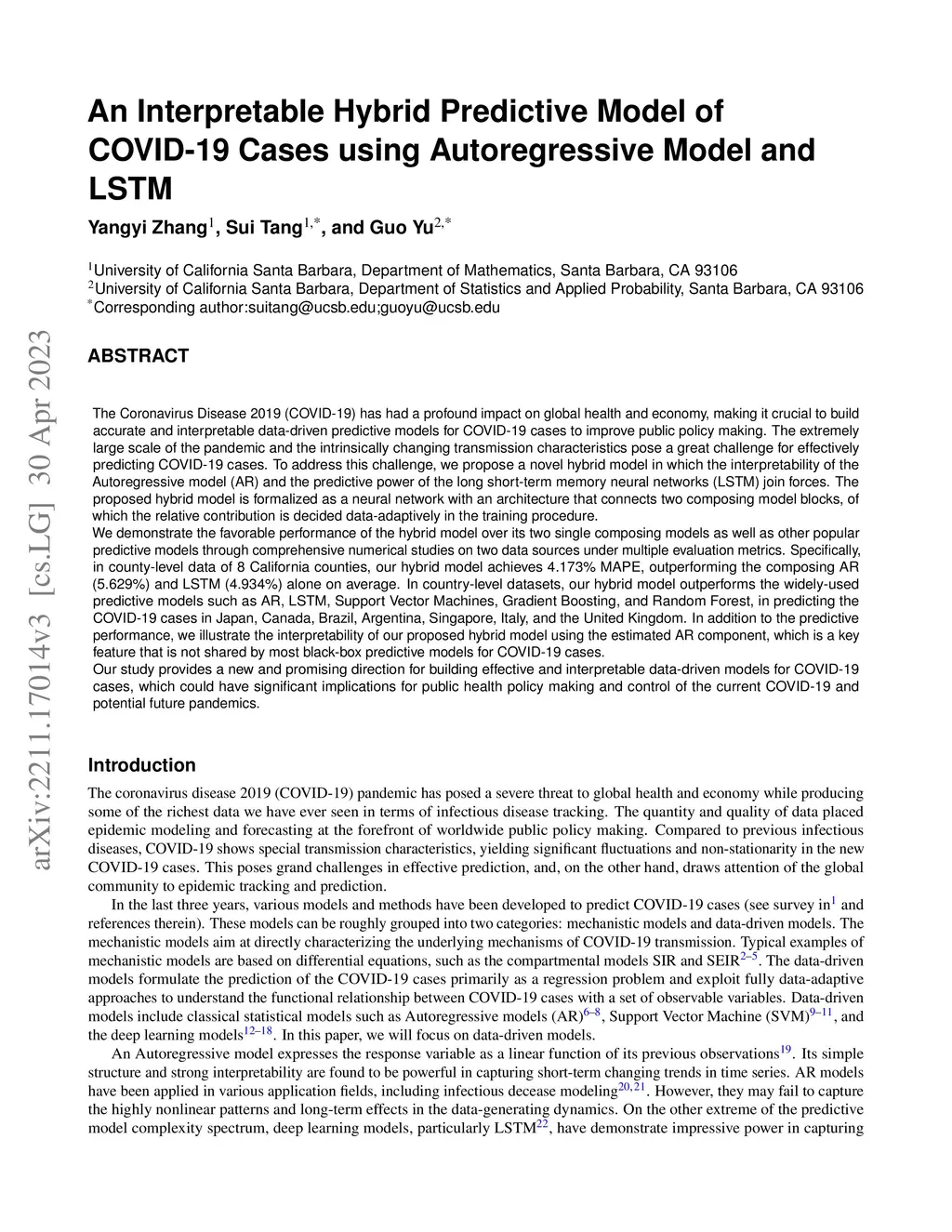 An Interpretable Hybrid Predictive Model of COVID-19 Cases using Autoregressive Model and LSTM