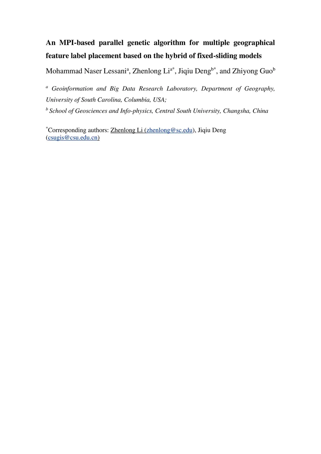 Multiple geographical feature label placement (MGFLP) has been a fundamental problem in geographic information visualization for decades. The nature of label positioning is proven an NP-hard problem, where the complexity of such a problem is directly influenced by the volume of input datasets. Advances in computer technology and robust approaches have addressed the problem of labeling. However, what is less considered in recent studies is the computational complexity of MGFLP, which significantly decreases the adoptability of those recently introduced approaches. In this study, an MPI parallel genetic algorithm is proposed for MGFLP based on a hybrid of fixed position model and sliding model to label fixed-types of geographical features. To evaluate the quality of label placement, a quality function is defined based on four quality metrics, label-feature conflict, label-label conflict, label ambiguity factor, and label position priority for points and polygons. Experimental results reveal that the proposed algorithm significantly reduced the overall score of the quality function and the computational time of label placement compared to the previous studies. The algorithm achieves a result in less than one minute with 6 label-feature conflicts, while Parallel-MS (Lessani et al., 2021) obtains the result in more than 20 minutes with 12 label-feature conflicts for the same dataset.