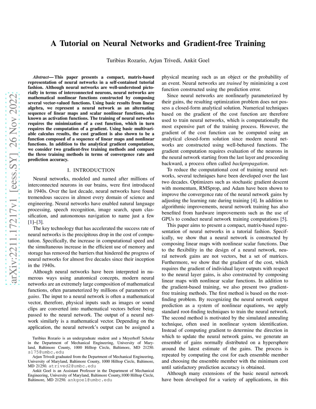 This paper presents a compact, matrix-based representation of neural networks in a self-contained tutorial fashion. Specifically, we develop neural networks as a composition of several vector-valued functions. Although neural networks are well-understood pictorially in terms of interconnected neurons, neural networks are mathematical nonlinear functions constructed by composing several vector-valued functions. Using basic results from linear algebra, we represent a neural network as an alternating sequence of linear maps and scalar nonlinear functions, also known as activation functions. The training of neural networks requires the minimization of a cost function, which in turn requires the computation of a gradient. Using basic multivariable calculus results, the cost gradient is also shown to be a function composed of a sequence of linear maps and nonlinear functions. In addition to the analytical gradient computation, we consider two gradient-free training methods and compare the three training methods in terms of convergence rate and prediction accuracy.