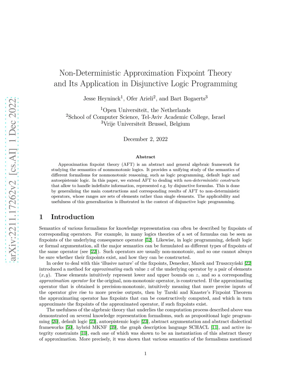 Approximation fixpoint theory (AFT) is an abstract and general algebraic framework for studying the semantics of nonmonotonic logics. It provides a unifying study of the semantics of different formalisms for nonmonotonic reasoning, such as logic programming, default logic and autoepistemic logic. In this paper, we extend AFT to dealing with non-deterministic constructs that allow to handle indefinite information, represented e.g. by disjunctive formulas. This is done by generalizing the main constructions and corresponding results of AFT to non-deterministic operators, whose ranges are sets of elements rather than single elements. The applicability and usefulness of this generalization is illustrated in the context of disjunctive logic programming.
