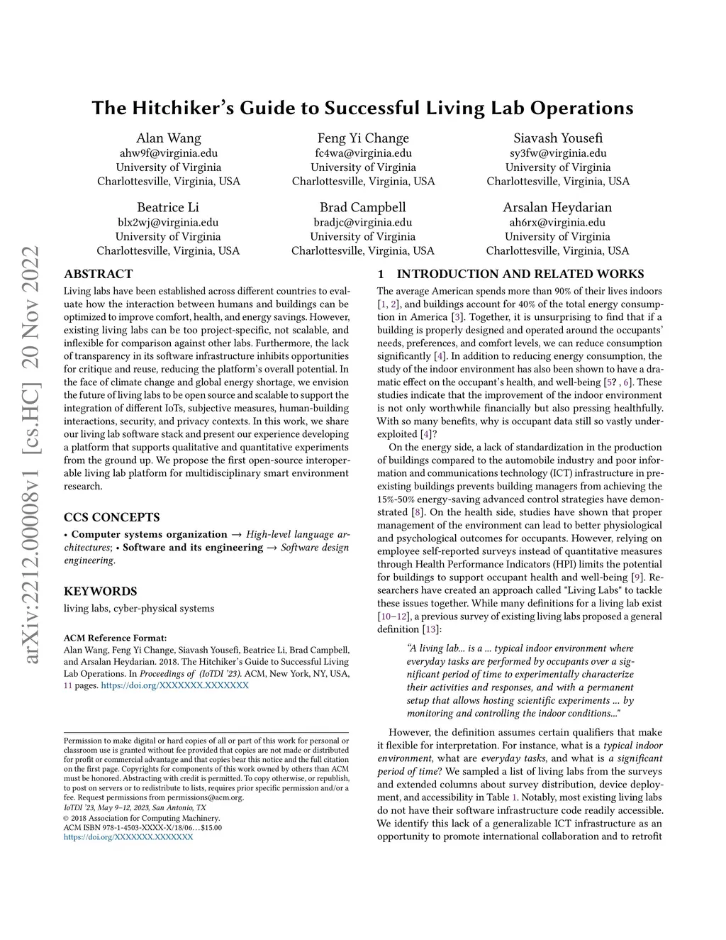 Living labs have been established across different countries to evaluate how the interaction between humans and buildings can be optimized to improve comfort, health, and energy savings. However, existing living labs can be too project-specific, not scalable, and inflexible for comparison against other labs. Furthermore, the lack of transparency in its software infrastructure inhibits opportunities for critique and reuse, reducing the platform's overall potential. In the face of climate change and global energy shortage, we envision the future of living labs to be open source and scalable to support the integration of different IoTs, subjective measures, human-building interactions, security, and privacy contexts. In this work, we share our living lab software stack and present our experience developing a platform that supports qualitative and quantitative experiments from the ground up. We propose the first open-source interoperable living lab platform for multidisciplinary smart environment research.