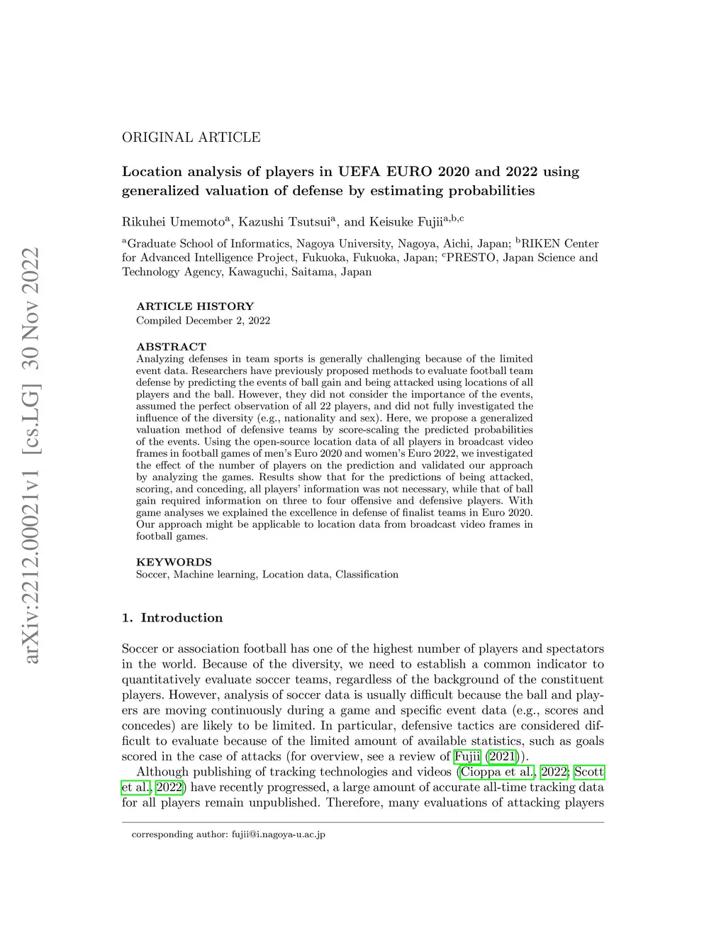 Location analysis of players in UEFA EURO 2020 and 2022 using