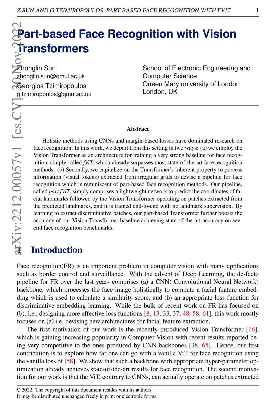 Holistic methods using CNNs and margin-based losses have dominated research on face recognition. In this work, we depart from this setting in two ways: (a) we employ the Vision Transformer as an architecture for training a very strong baseline for face recognition, simply called fViT, which already surpasses most state-of-the-art face recognition methods. (b) Secondly, we capitalize on the Transformer's inherent property to process information (visual tokens) extracted from irregular grids to devise a pipeline for face recognition which is reminiscent of part-based face recognition methods. Our pipeline, called part fViT, simply comprises a lightweight network to predict the coordinates of facial landmarks followed by the Vision Transformer operating on patches extracted from the predicted landmarks, and it is trained end-to-end with no landmark supervision. By learning to extract discriminative patches, our part-based Transformer further boosts the accuracy of our Vision Transformer baseline achieving state-of-the-art accuracy on several face recognition benchmarks.
