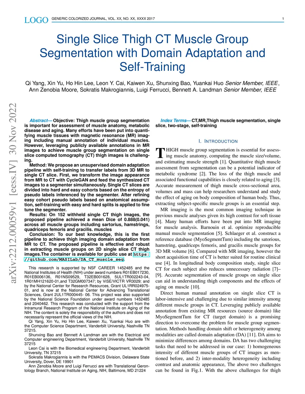 Single Slice Thigh CT Muscle Group Segmentation with Domain Adaptation