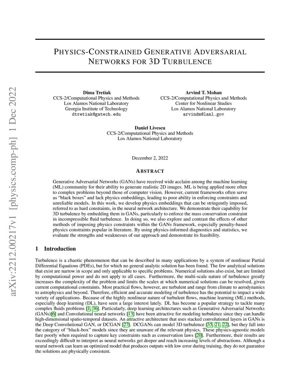 Generative Adversarial Networks (GANs) have received wide acclaim among the machine learning (ML) community for their ability to generate realistic 2D images. ML is being applied more often to complex problems beyond those of computer vision. However, current frameworks often serve as black boxes and lack physics embeddings, leading to poor ability in enforcing constraints and unreliable models. In this work, we develop physics embeddings that can be stringently imposed, referred to as hard constraints, in the neural network architecture. We demonstrate their capability for 3D turbulence by embedding them in GANs, particularly to enforce the mass conservation constraint in incompressible fluid turbulence. In doing so, we also explore and contrast the effects of other methods of imposing physics constraints within the GANs framework, especially penalty-based physics constraints popular in literature. By using physics-informed diagnostics and statistics, we evaluate the strengths and weaknesses of our approach and demonstrate its feasibility.