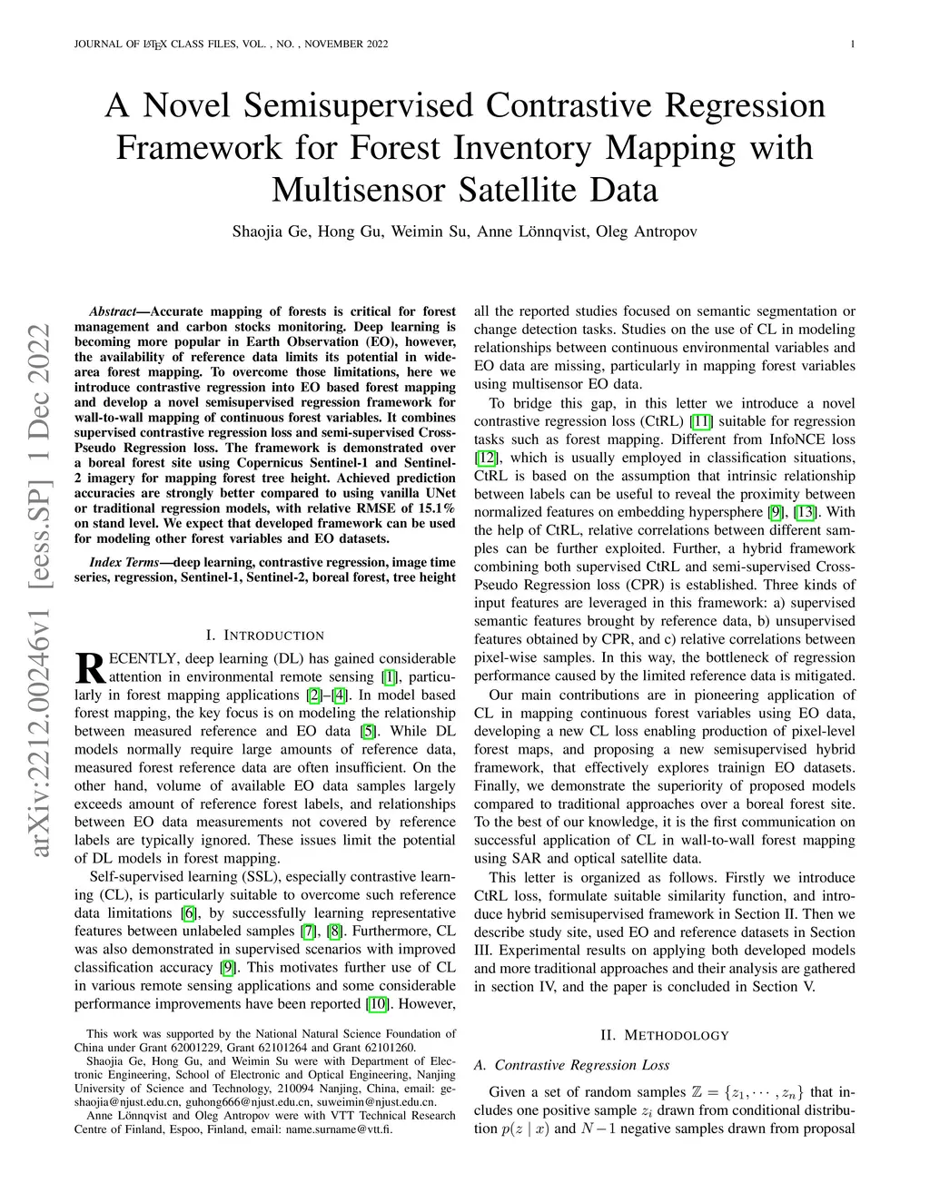 A Novel Semisupervised Contrastive Regression Framework for Forest