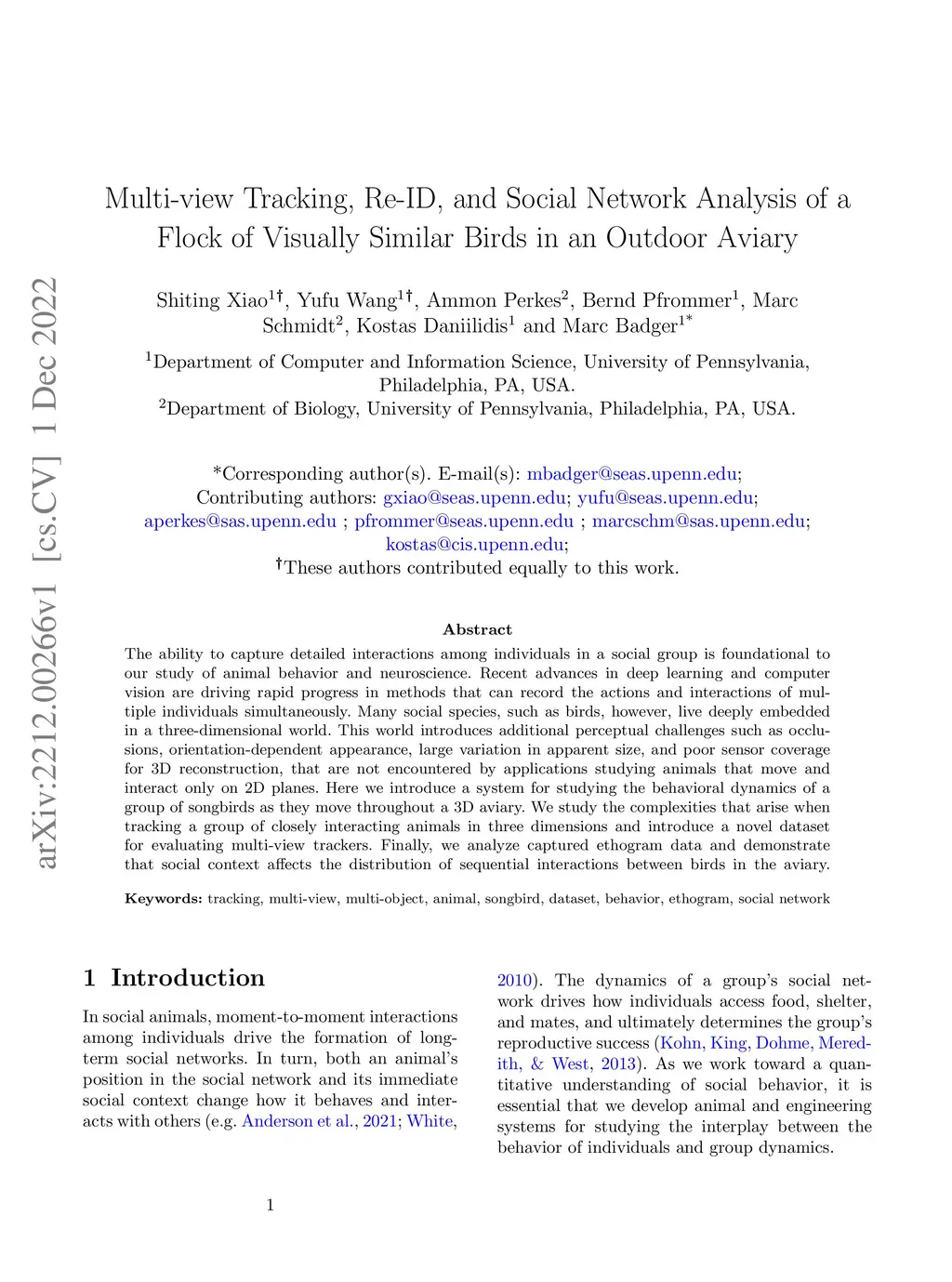 Multi-view Tracking, Re-ID, and Social Network Analysis of a Flock of