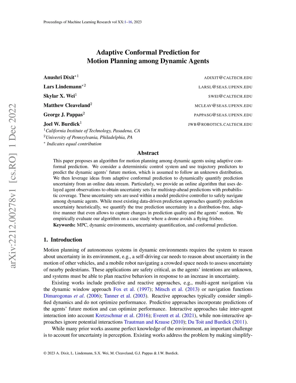 Adaptive Conformal Prediction for Motion Planning among Dynamic Agents