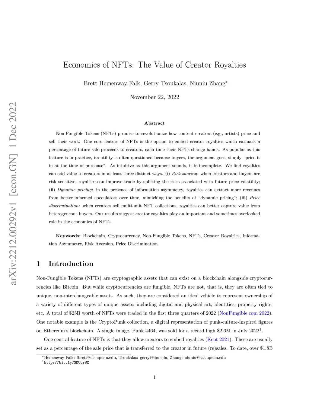 Economics of NFTs: The Value of Creator Royalties