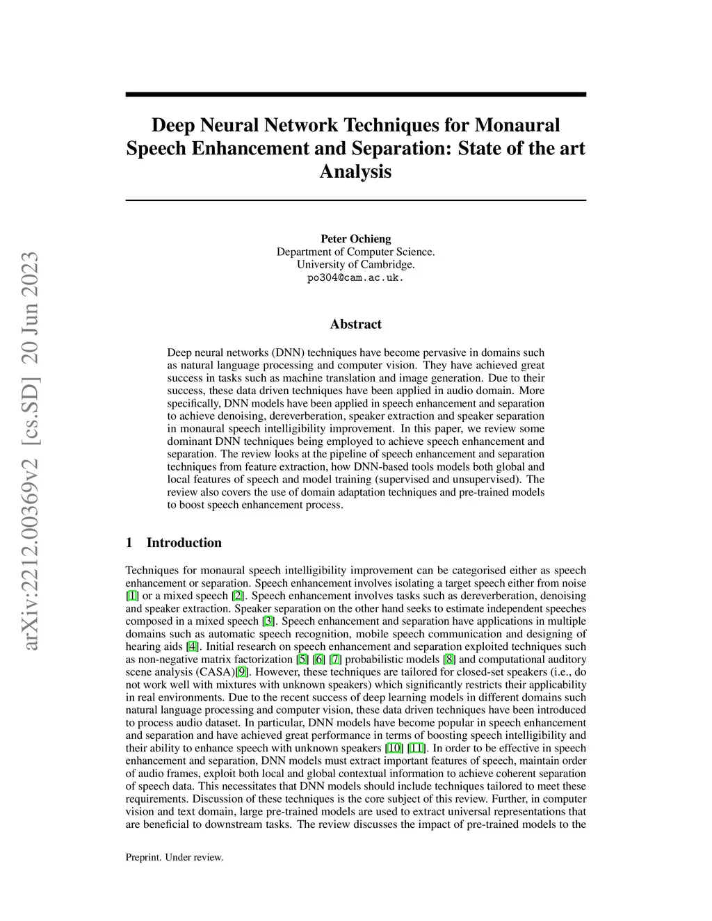 Deep neural network techniques for monaural speech enhancement: state of