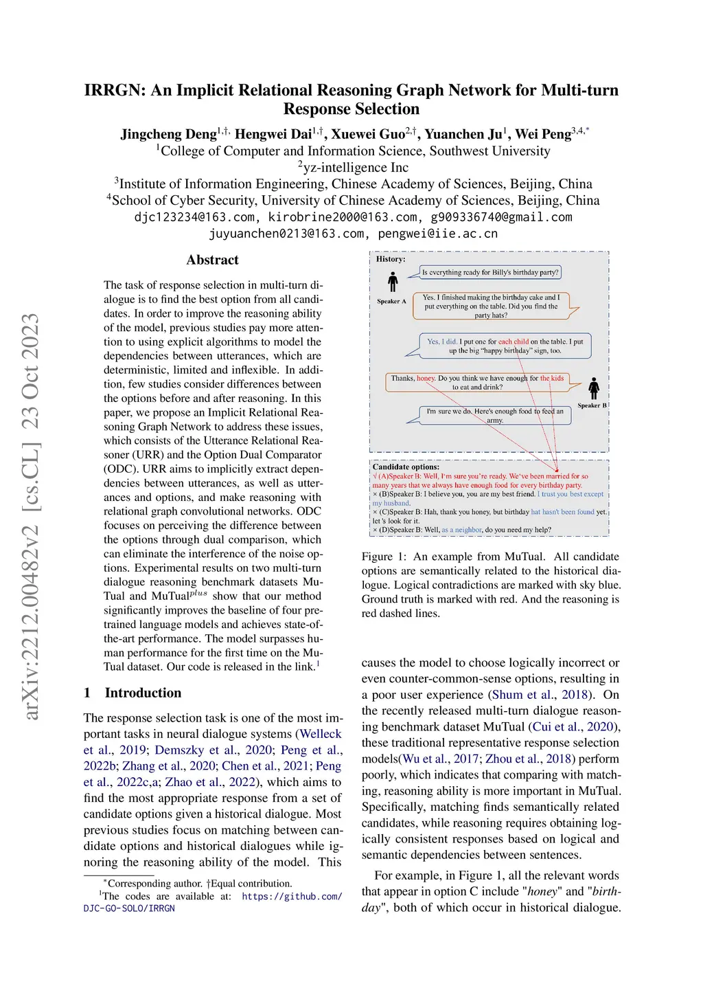 IRRGN: An Implicit Relational Reasoning Graph Network for Multi-turn