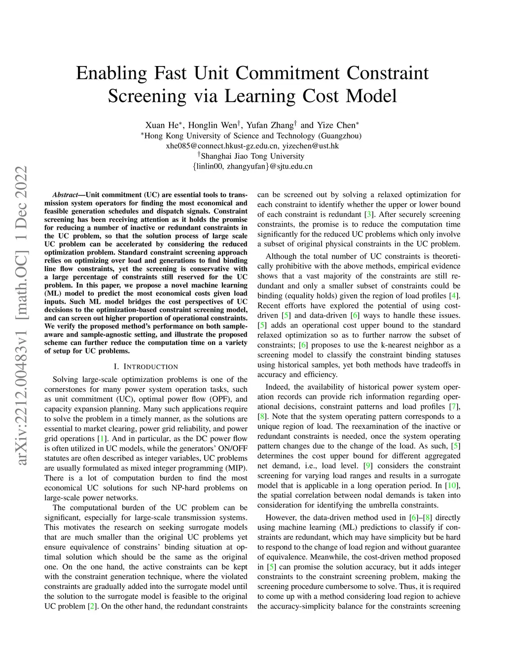 Enabling Fast Unit Commitment Constraint Screening via Learning Cost
