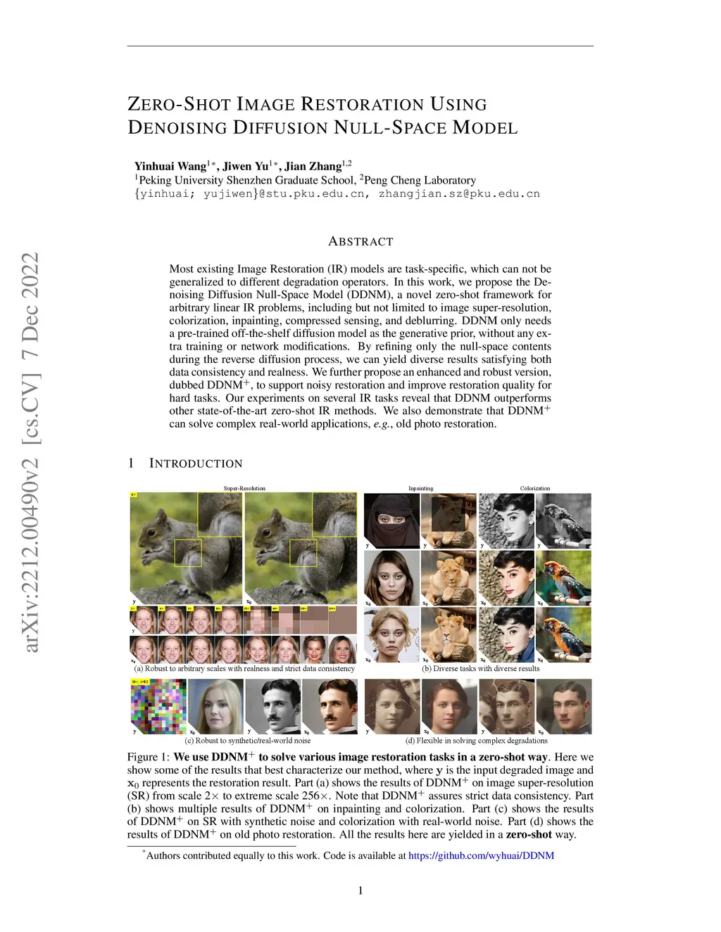 Zero-Shot Image Restoration Using Denoising Diffusion Null-Space Model