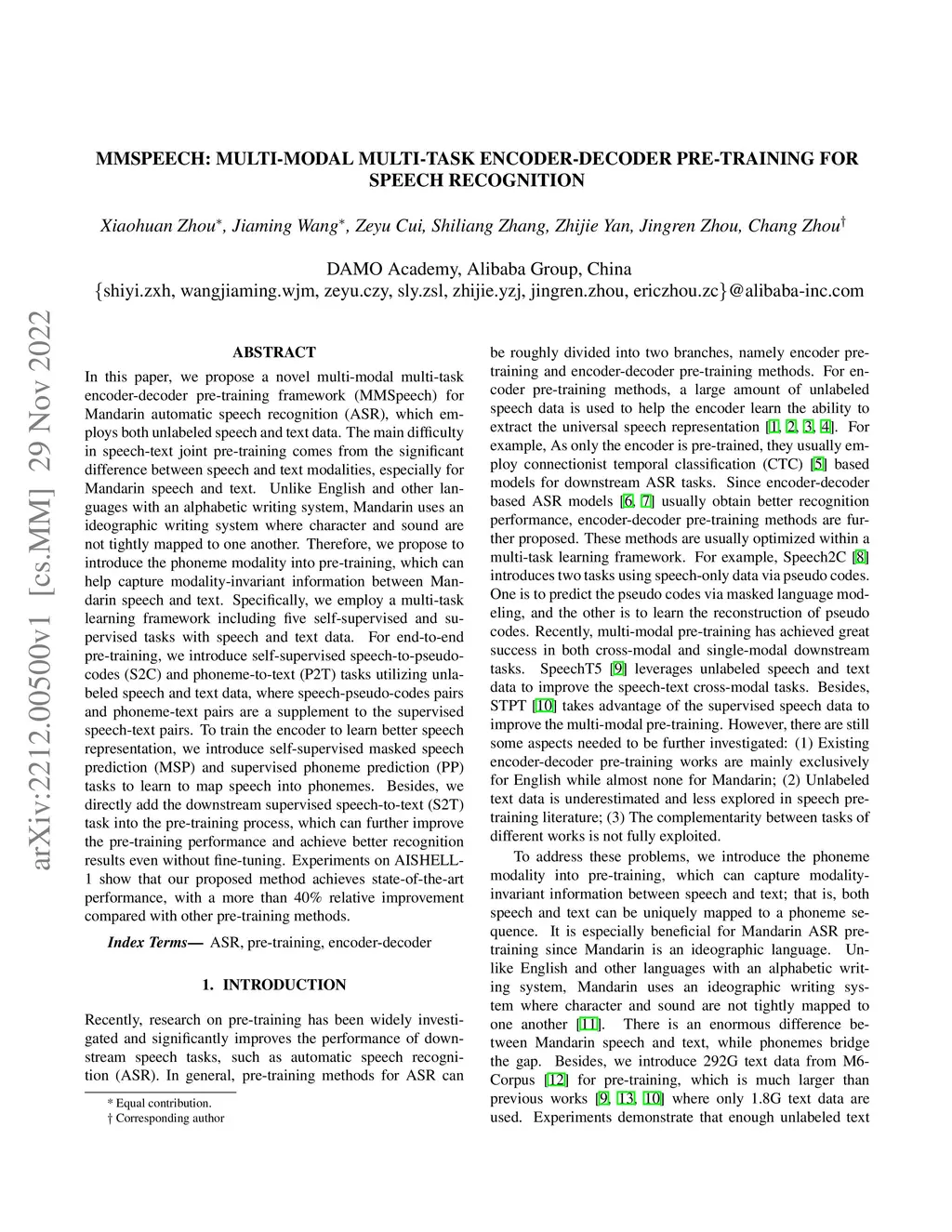 MMSpeech: Multi-modal Multi-task Encoder-Decoder Pre-training for Speech