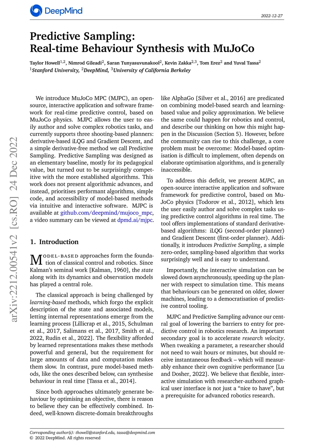 Predictive Sampling: Real-time Behaviour Synthesis with MuJoCo