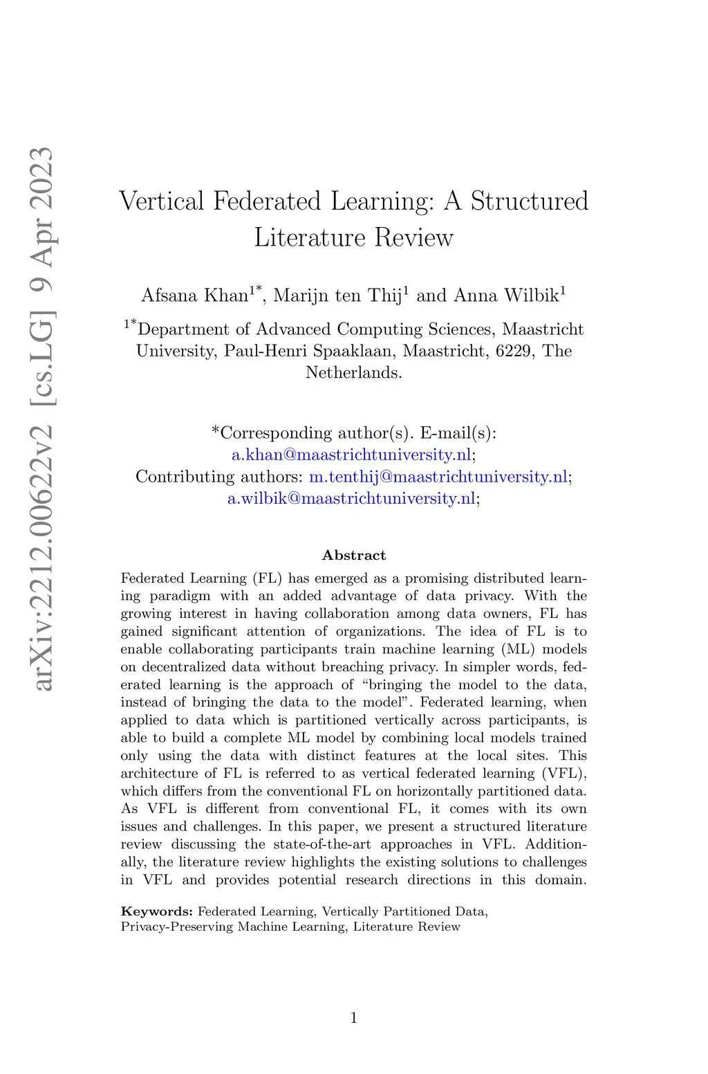Vertical Federated Learning: A Structured Literature Review