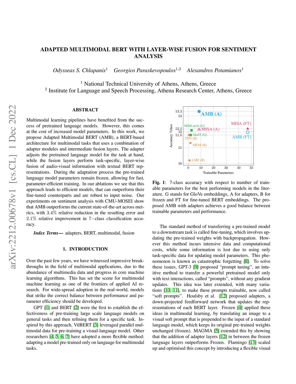 Adapted Multimodal BERT with Layer-wise Fusion for Sentiment Analysis