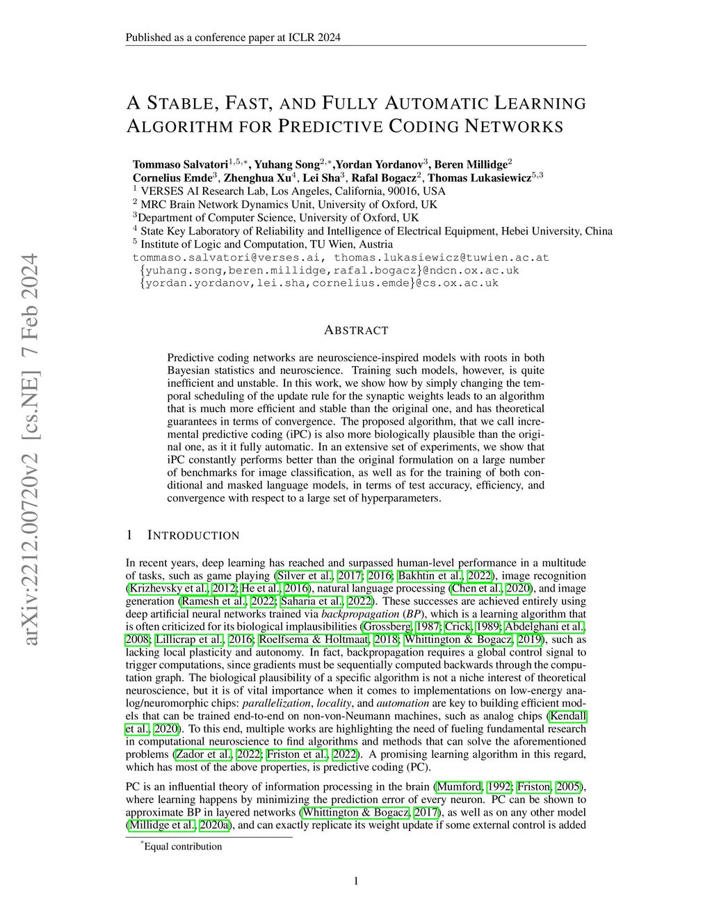Predictive coding networks are neuroscience-inspired models with roots in both Bayesian statistics and neuroscience. Training such models, however, is quite inefficient and unstable. In this work, we show how by simply changing the temporal scheduling of the update rule for the synaptic weights leads to an algorithm that is much more efficient and stable than the original one, and has theoretical guarantees in terms of convergence. The proposed algorithm, that we call incremental predictive coding (iPC) is also more biologically plausible than the original one, as it it fully automatic. In an extensive set of experiments, we show that iPC constantly performs better than the original formulation on a large number of benchmarks for image classification, as well as for the training of both conditional and masked language models, in terms of test accuracy, efficiency, and convergence with respect to a large set of hyperparameters.
