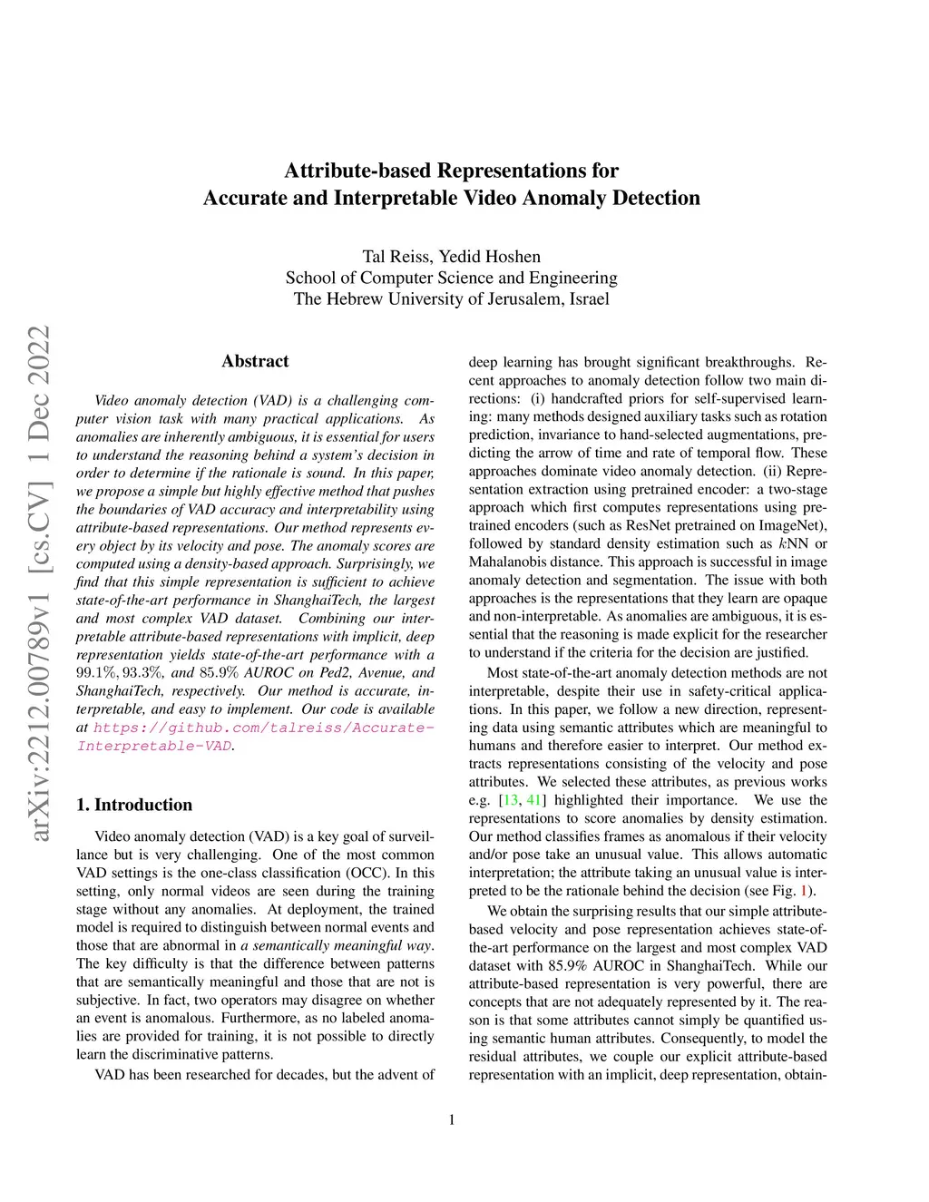 Video anomaly detection (VAD) identifies suspicious events in videos, which is critical for crime prevention and homeland security. In this paper, we propose a simple but highly effective VAD method that relies on attribute-based representations. The base version of our method represents every object by its velocity and pose, and computes anomaly scores by density estimation. Surprisingly, this simple representation is sufficient to achieve state-of-the-art performance in ShanghaiTech, the most commonly used VAD dataset. Combining our attribute-based representations with an off-the-shelf, pretrained deep representation yields state-of-the-art performance with a , and AUROC on Ped2, Avenue, and ShanghaiTech, respectively.