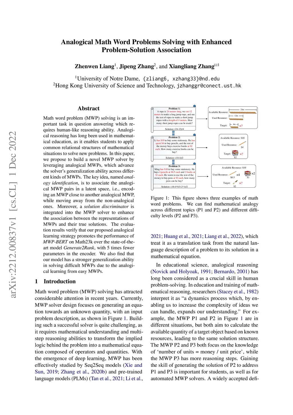 Analogical Math Word Problems Solving with Enhanced Problem-Solution