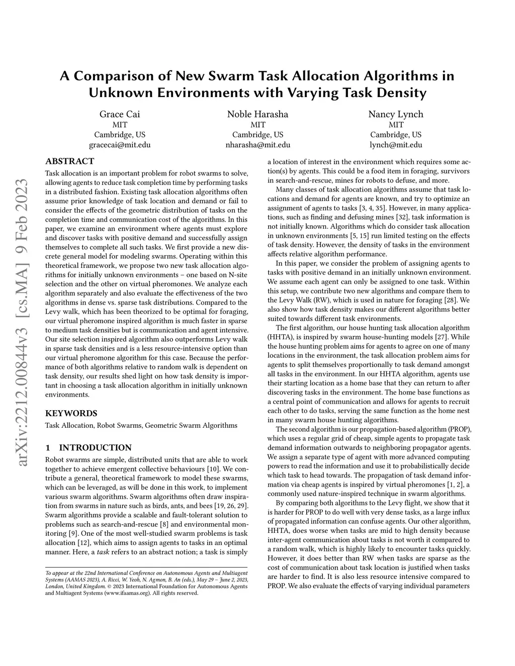 A Comparison of New Swarm Task Allocation Algorithms in Unknown