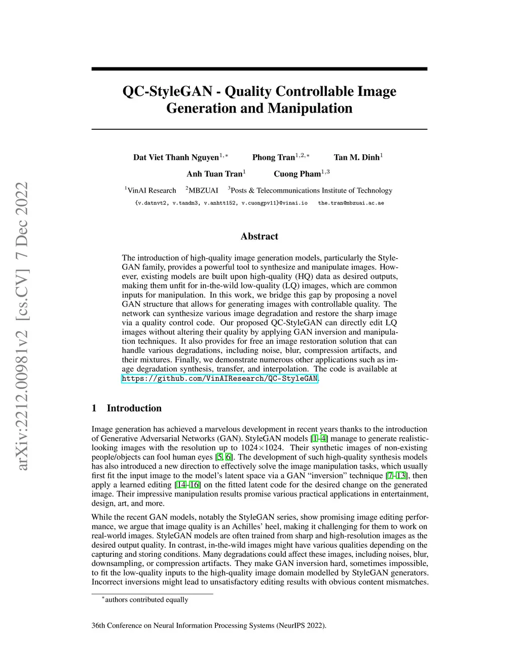 QC-StyleGAN -- Quality Controllable Image Generation and Manipulation