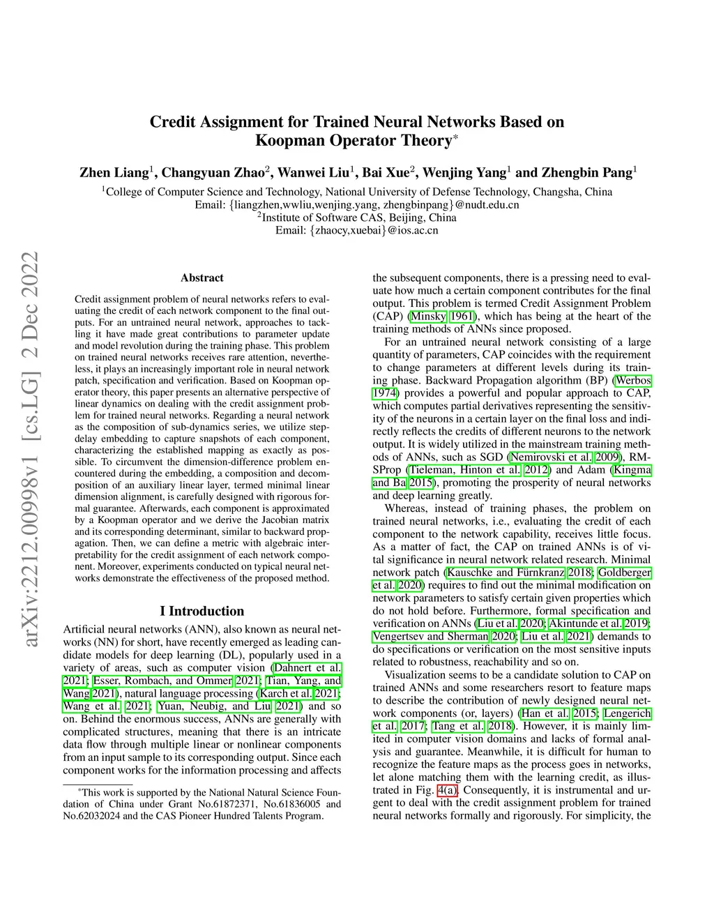 Credit Assignment for Trained Neural Networks Based on Koopman Operator