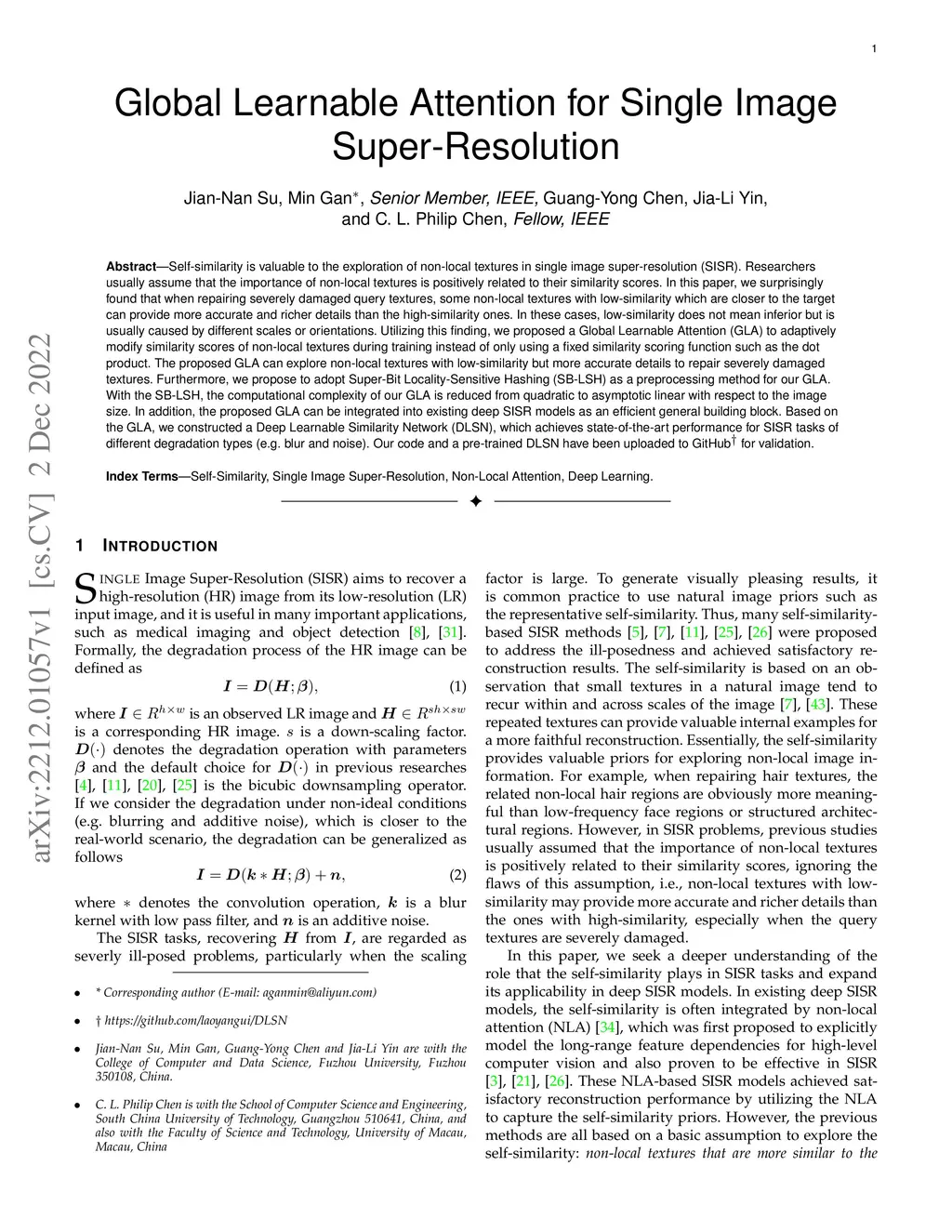 Self-similarity is valuable to the exploration of non-local textures in single image super-resolution (SISR). Researchers usually assume that the importance of non-local textures is positively related to their similarity scores. In this paper, we surprisingly found that when repairing severely damaged query textures, some non-local textures with low-similarity which are closer to the target can provide more accurate and richer details than the high-similarity ones. In these cases, low-similarity does not mean inferior but is usually caused by different scales or orientations. Utilizing this finding, we proposed a Global Learnable Attention (GLA) to adaptively modify similarity scores of non-local textures during training instead of only using a fixed similarity scoring function such as the dot product. The proposed GLA can explore non-local textures with low-similarity but more accurate details to repair severely damaged textures. Furthermore, we propose to adopt Super-Bit Locality-Sensitive Hashing (SB-LSH) as a preprocessing method for our GLA. With the SB-LSH, the computational complexity of our GLA is reduced from quadratic to asymptotic linear with respect to the image size. In addition, the proposed GLA can be integrated into existing deep SISR models as an efficient general building block. Based on the GLA, we constructed a Deep Learnable Similarity Network (DLSN), which achieves state-of-the-art performance for SISR tasks of different degradation types (e.g. blur and noise). Our code and a pre-trained DLSN have been uploaded to GitHub{\dag} for validation.
