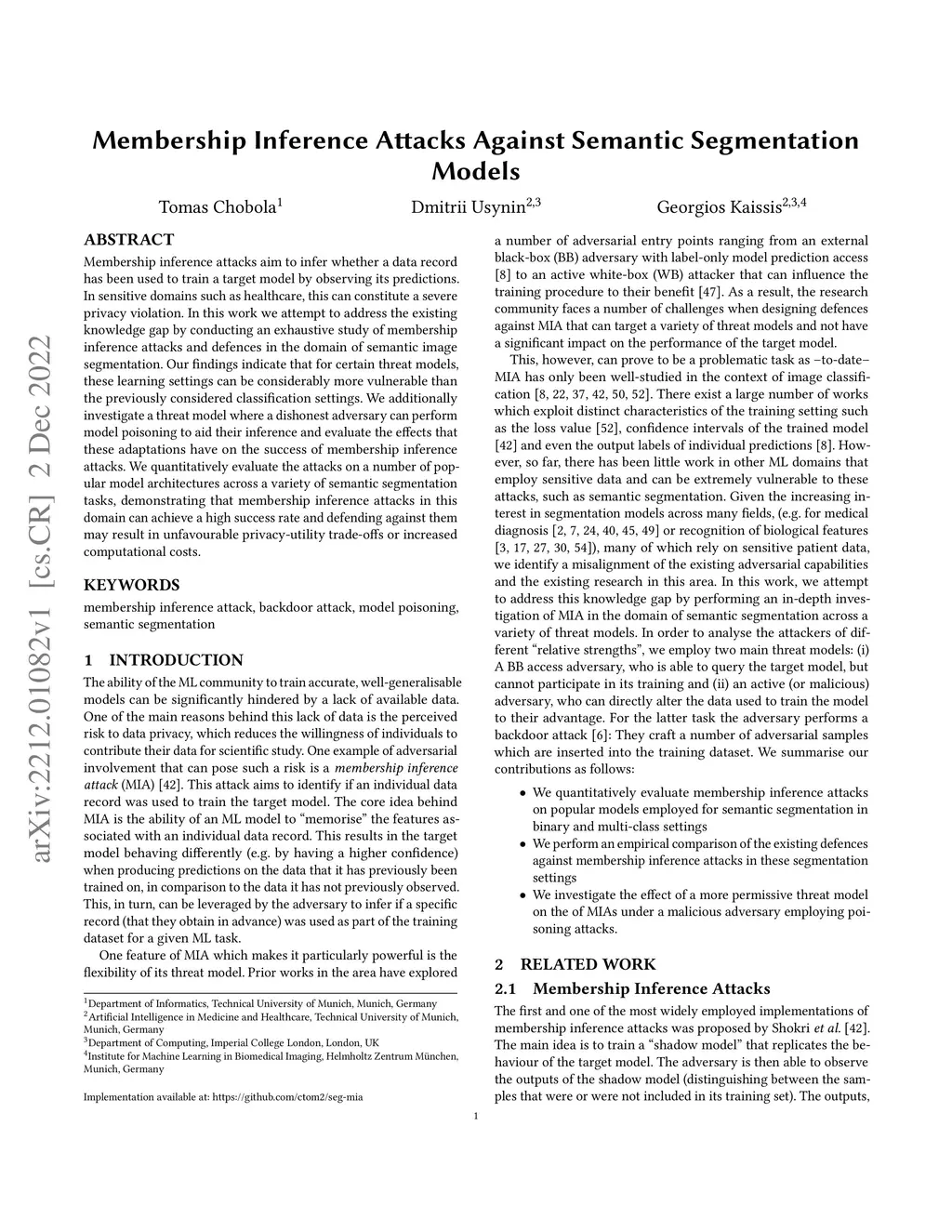 Membership Inference Attacks Against Semantic Segmentation Models