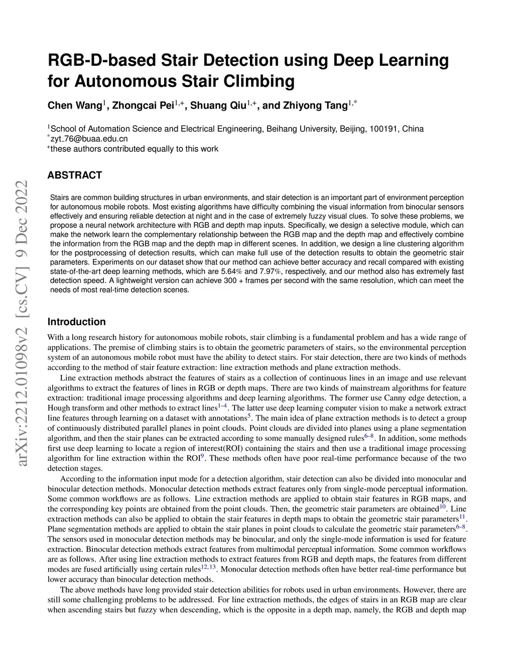 RGB-D-based Stair Detection using Deep Learning for Autonomous Stair