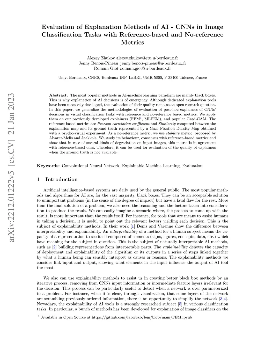 The most popular methods in AI-machine learning paradigm are mainly black boxes. This is why explanation of AI decisions is of emergency. Although dedicated explanation tools have been massively developed, the evaluation of their quality remains an open research question. In this paper, we generalize the methodologies of evaluation of post-hoc explainers of CNNs' decisions in visual classification tasks with reference and no-reference based metrics. We apply them on our previously developed explainers (FEM, MLFEM), and popular Grad-CAM. The reference-based metrics are Pearson correlation coefficient and Similarity computed between the explanation map and its ground truth represented by a Gaze Fixation Density Map obtained with a psycho-visual experiment. As a no-reference metric, we use stability metric, proposed by Alvarez-Melis and Jaakkola. We study its behaviour, consensus with reference-based metrics and show that in case of several kinds of degradation on input images, this metric is in agreement with reference-based ones. Therefore, it can be used for evaluation of the quality of explainers when the ground truth is not available.