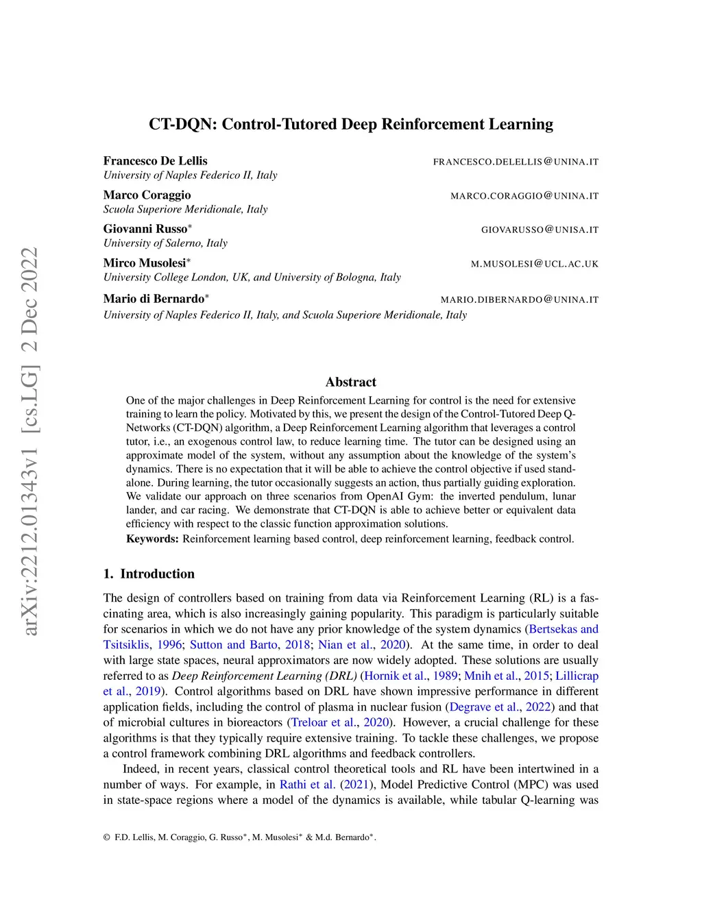 CT-DQN: Control-Tutored Deep Reinforcement Learning