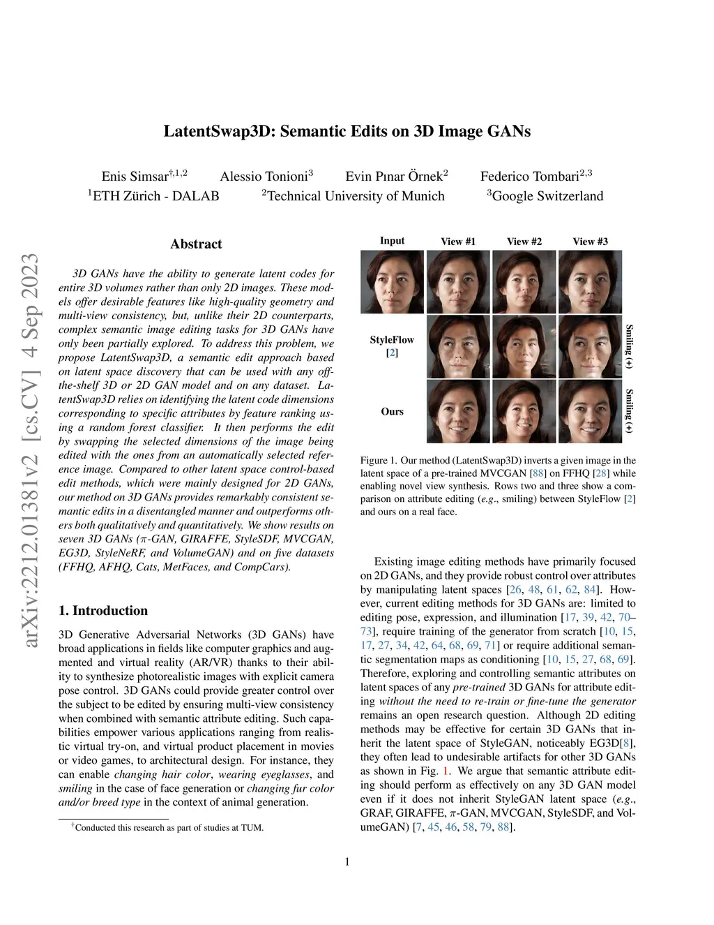 LatentSwap3D: Semantic Edits on 3D Image GANs