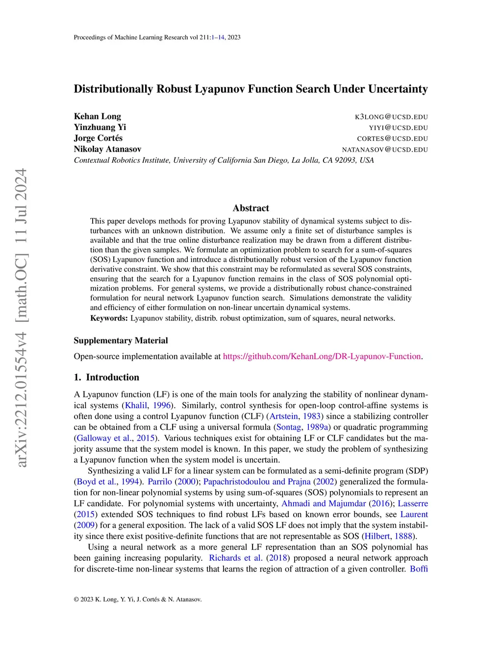 Distributionally Robust Lyapunov Function Search Under Uncertainty