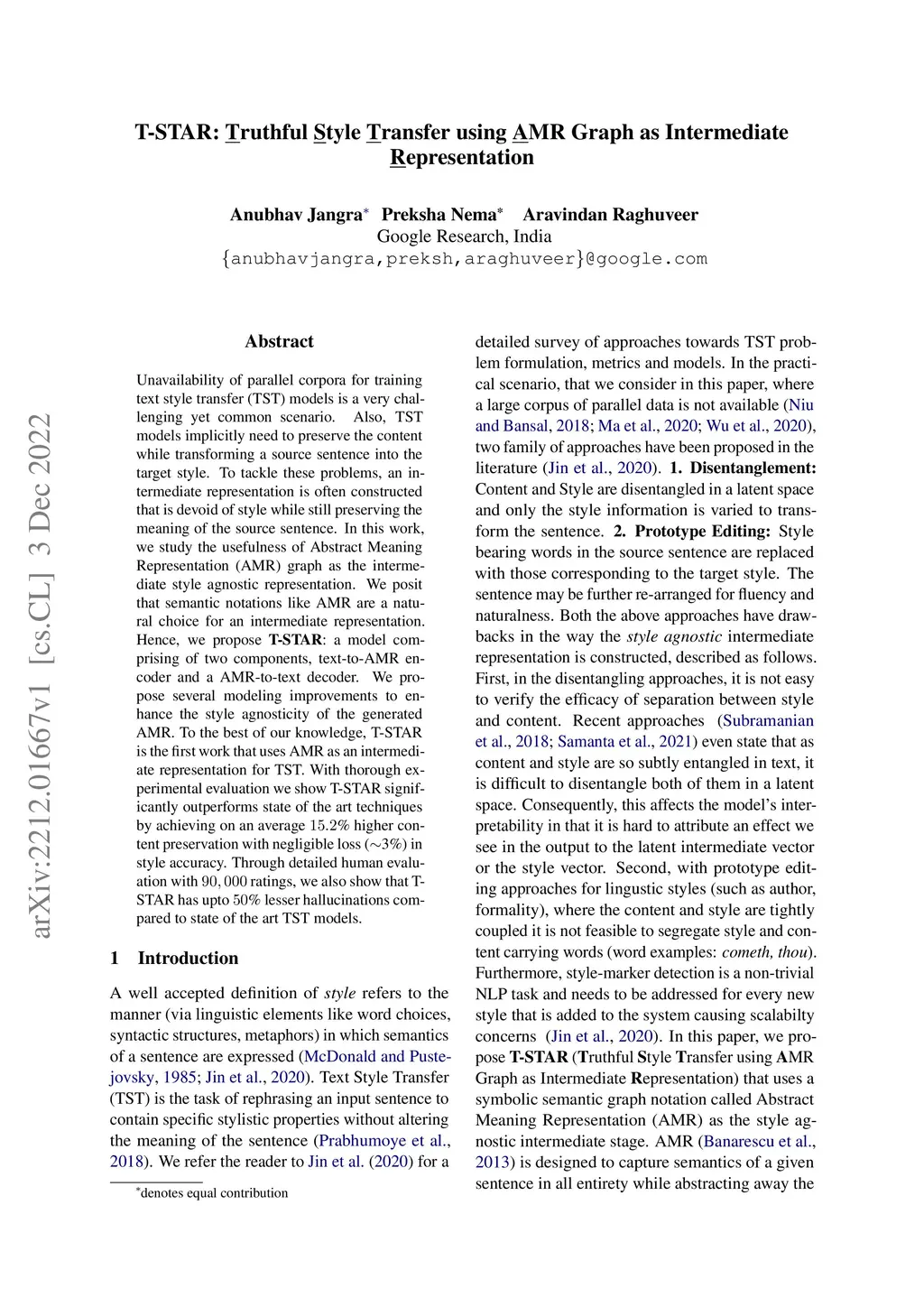 T-STAR: Truthful Style Transfer using AMR Graph as Intermediate