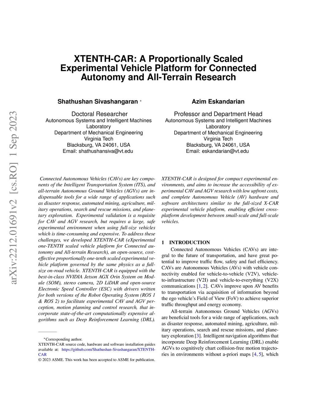 XTENTH-CAR: A Proportionally Scaled Experimental Vehicle Platform for