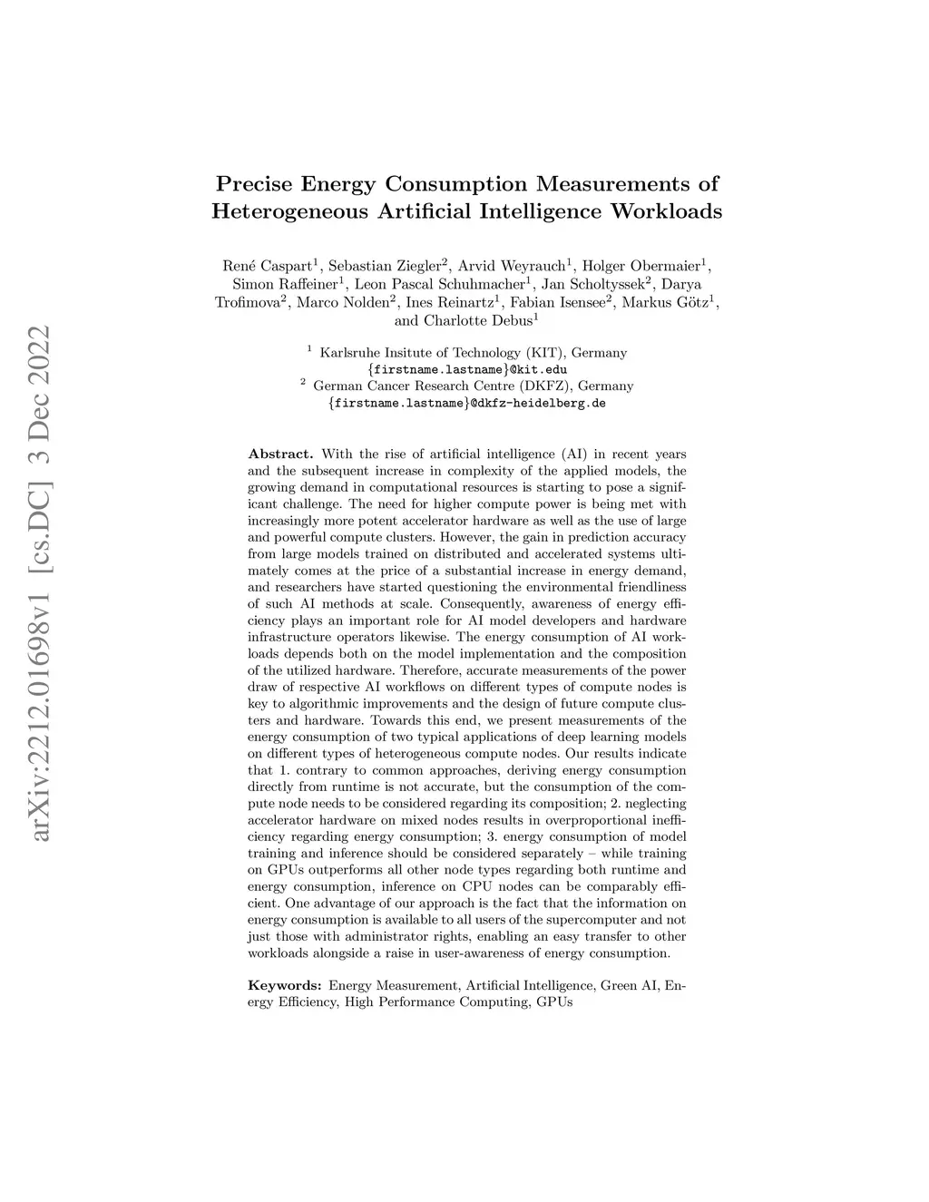 Precise Energy Consumption Measurements of Heterogeneous Artificial