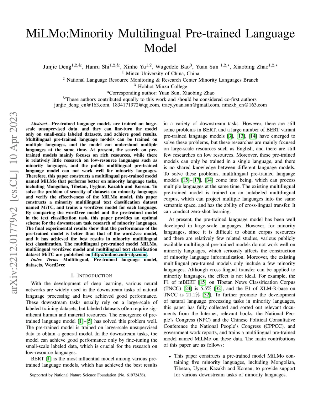 MiLMo:Minority Multilingual Pre-trained Language Model