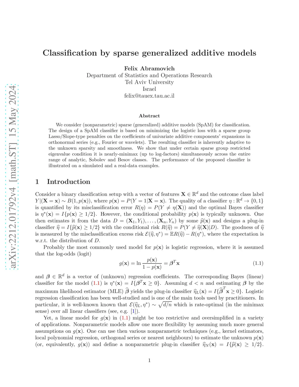 Classification by sparse additive models