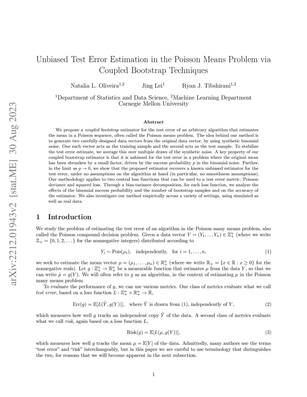 We propose a coupled bootstrap estimator for the test error of an arbitrary algorithm that estimates the mean in a Poisson sequence, often called the Poisson means problem. The idea behind our method is to generate two carefully-designed data vectors from the original data vector, by using synthetic binomial noise. One such vector acts as the training sample and the second acts as the test sample. To stabilize the test error estimate, we average this over multiple draws of the synthetic noise. A key property of our coupled bootstrap estimator is that it is unbiased for the test error in a problem where the original mean has been shrunken by a small factor, driven by the success probability in the binomial noise. Further, in the limit as , we show that the proposed estimator recovers a known unbiased estimator for the test error, under no assumptions on the algorithm at hand (in particular, no smoothness assumptions). Our methodology applies to two central loss functions that can be used to a test error metric: Poisson deviance and squared loss. Through a bias-variance decomposition, for each loss function, we analyze the effects of the binomial success probability and the number of bootstrap samples and on the accuracy of the estimator. We also investigate our method empirically across a variety of settings, using simulated as well as real data.