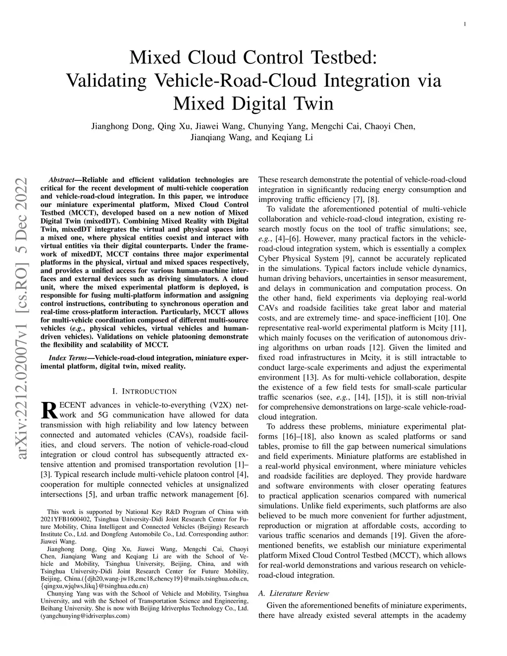 Mixed Cloud Control Testbed: Validating Vehicle-Road-Cloud Integration