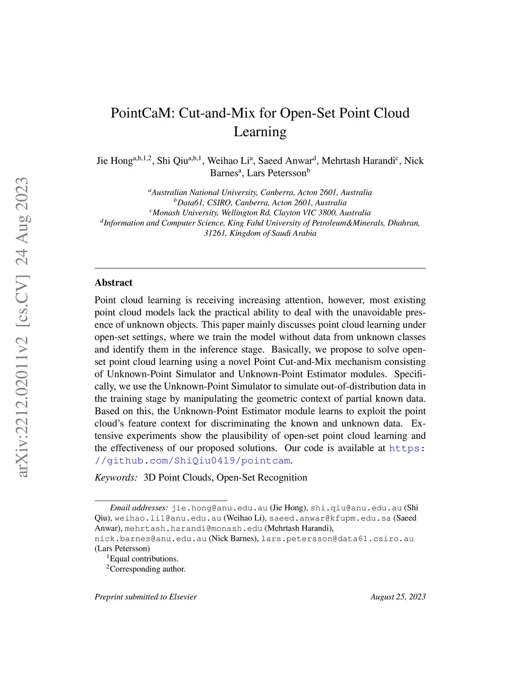 PointCaM: Cut-and-Mix for Open-Set Point Cloud Learning