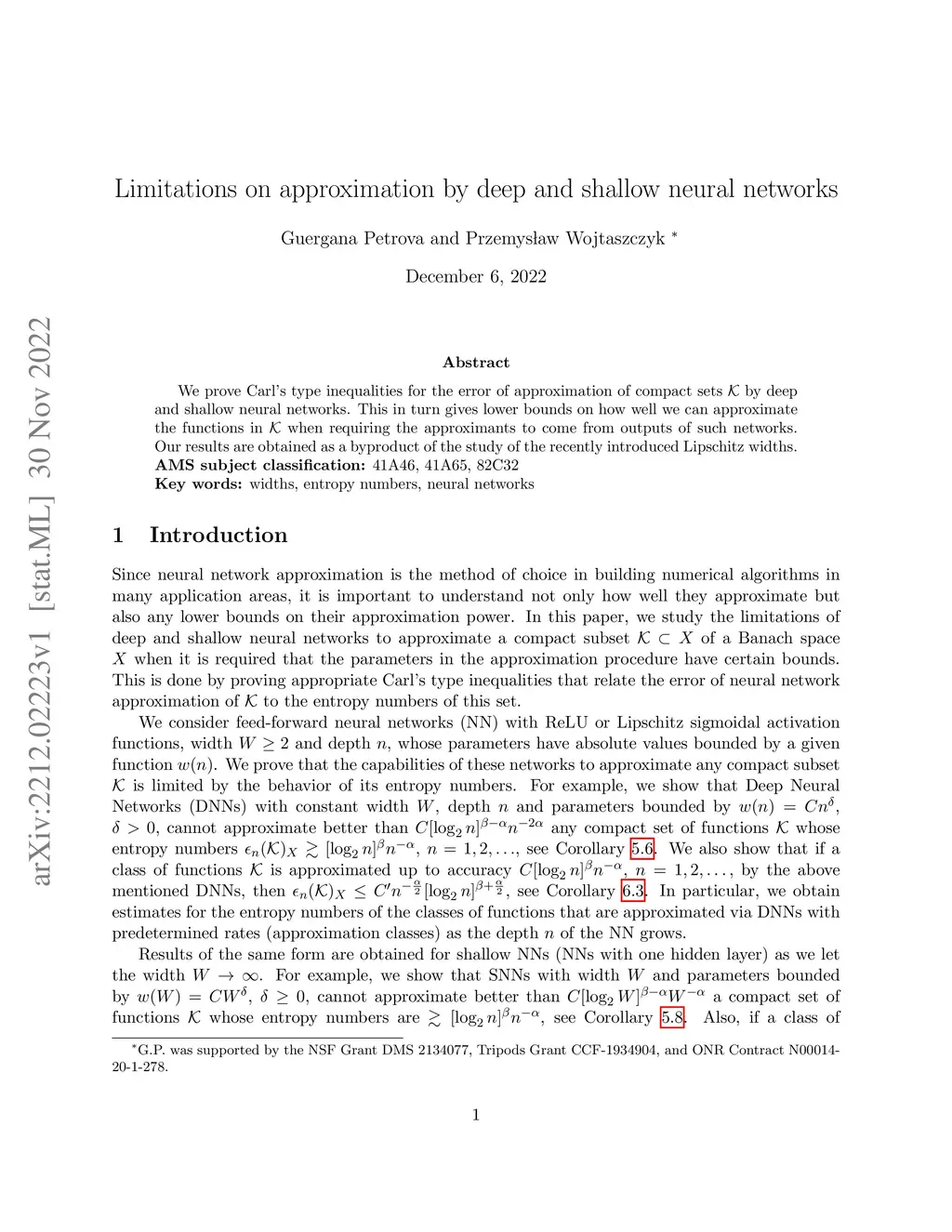 We prove Carl's type inequalities for the error of approximation of compact sets K by deep and shallow neural networks. This in turn gives lower bounds on how well we can approximate the functions in K when requiring the approximants to come from outputs of such networks. Our results are obtained as a byproduct of the study of the recently introduced Lipschitz widths.