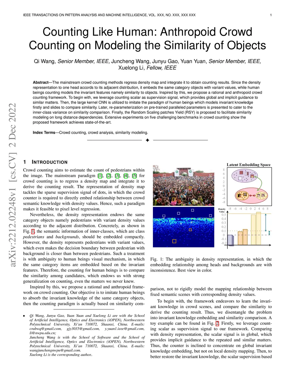 The mainstream crowd counting methods regress density map and integrate it to obtain counting results. Since the density representation to one head accords to its adjacent distribution, it embeds the same category objects with variant values, while human beings counting models the invariant features namely similarity to objects. Inspired by this, we propose a rational and anthropoid crowd counting framework. To begin with, we leverage counting scalar as supervision signal, which provides global and implicit guidance to similar matters. Then, the large kernel CNN is utilized to imitate the paradigm of human beings which models invariant knowledge firstly and slides to compare similarity. Later, re-parameterization on pre-trained paralleled parameters is presented to cater to the inner-class variance on similarity comparison. Finally, the Random Scaling patches Yield (RSY) is proposed to facilitate similarity modeling on long distance dependencies. Extensive experiments on five challenging benchmarks in crowd counting show the proposed framework achieves state-of-the-art.